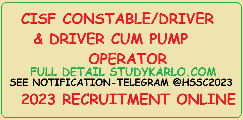 CISF Constable Driver and Constable pump operator Recruitment 2023